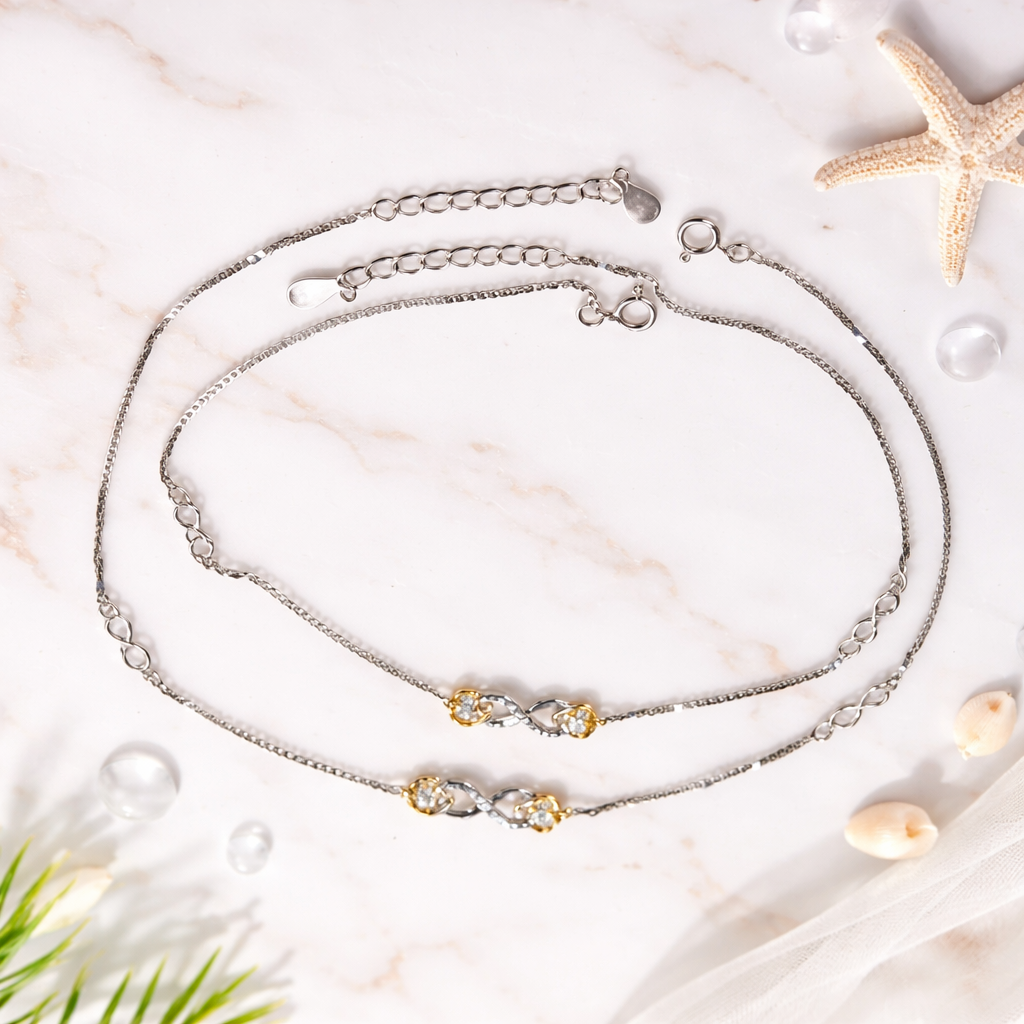 Silver Eternal Love Infinity Golden Heart Anklet